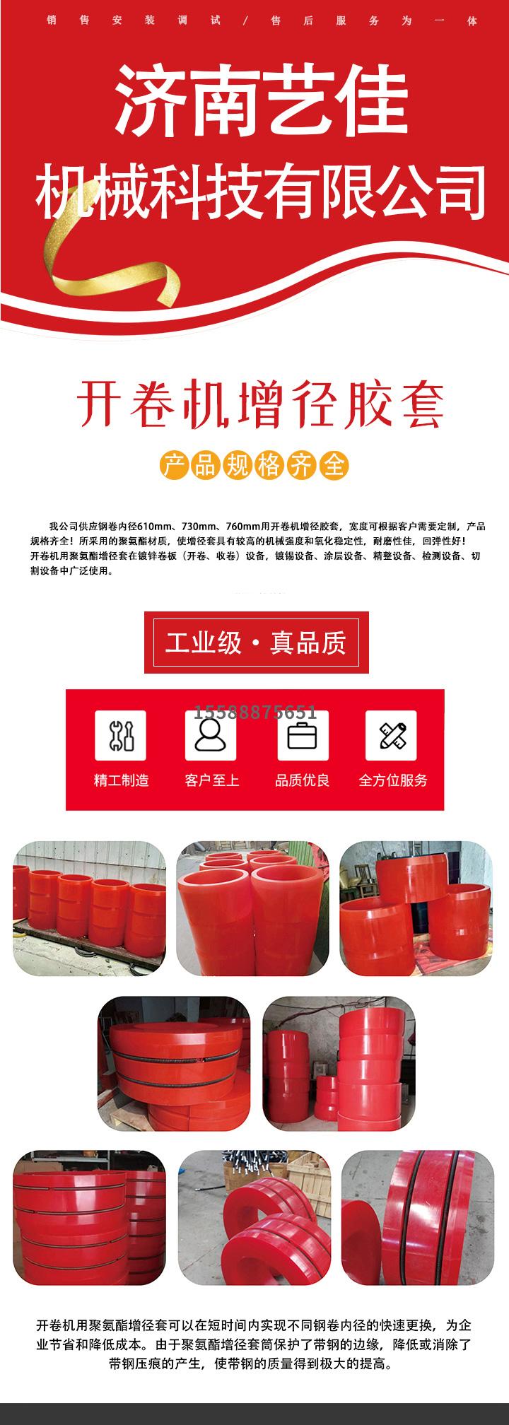 | 上一篇:濟(jì)南藝佳新增610變760開卷機(jī)聚氨酯增徑膠套 下一篇:鋼卷大內(nèi)徑橡膠墊圈尺寸由508擴(kuò)大到760的聚氨酯增徑套哪里有售 |
